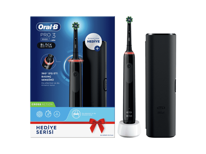 Oral-B Pro3500 Black Edition Şarj Edilebilir Diş Fırçası + Seyahat Kabı Hediye
